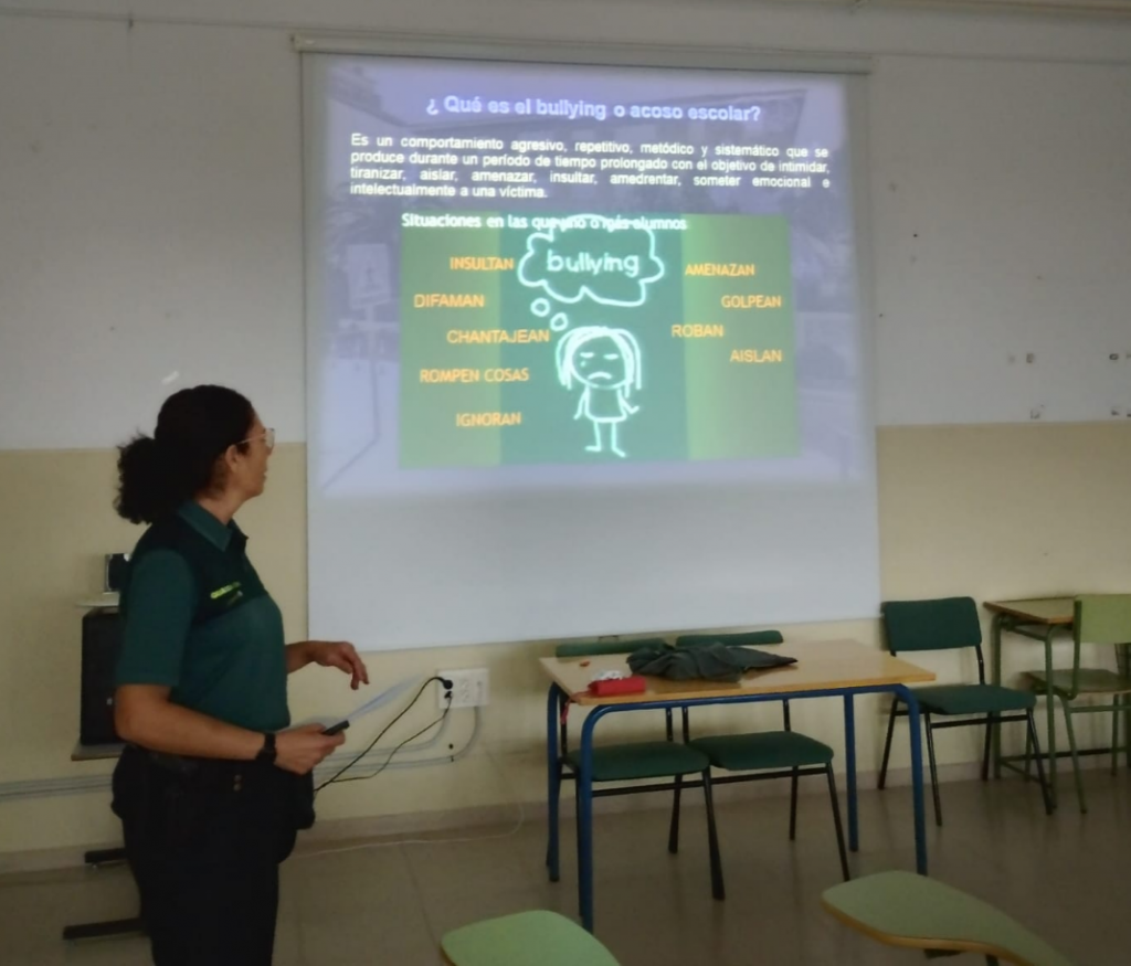 El pasado día 21 de Octubre de 2025, en la sala de usos múltiples del IES Juan de Soto Alvarado, se realizó una charla muy interesante y necesaria, enmarcada dentro del Plan Director. A la charla asistieron los alumnos de 4º de ESO, diversos profesores y orientación. Un exponente del cuerpo de la guardia civil se desplazó para mostrar de primera mano videos sobre este gran problema de actualidad, y ayudar en la identificación y concienciación sobre el mismo. Ha sido un acto muy útil ya que los ejemplos usados fueron realmente impactantes y ayuda en la concienciación y detección de este gran problema.